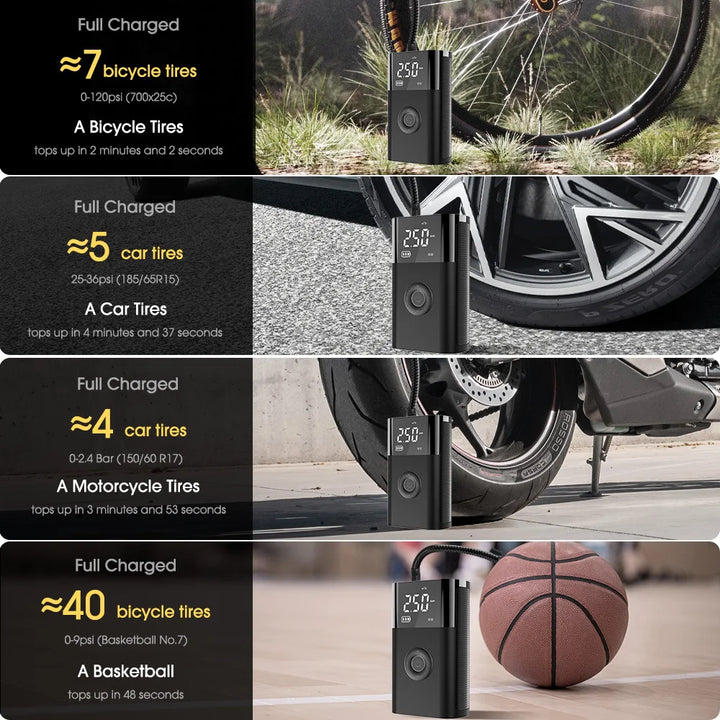 Não sei meu CEPBomba de compressor de inflador portátil CARSUN com lâmpada LED para carro, motocicleta, bicicleta, bolas de pneu, sem fio, carro elétrico, bomba de pneu de ar