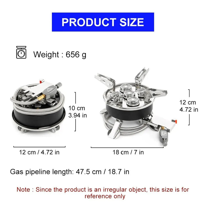 • Estrutura dividida:A estrutura dividida deste fogão a gás facilita o transporte e armazenamento, tornando-o uma escolha conveniente e prática para os entusiastas do ar livre.